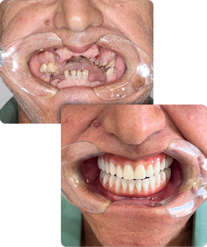 Trata-se de uma estrutura de titânio posicionada no osso, que serve de base para a colocação de dentes fixos, devolvendo a função mastigatória e a estética do sorriso.